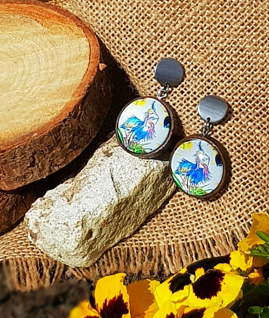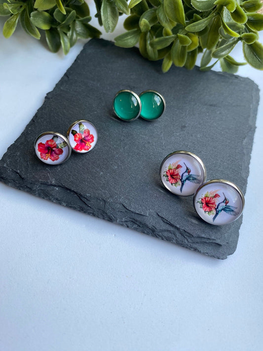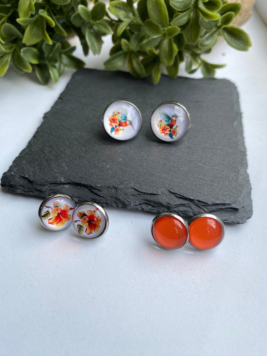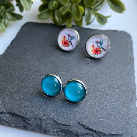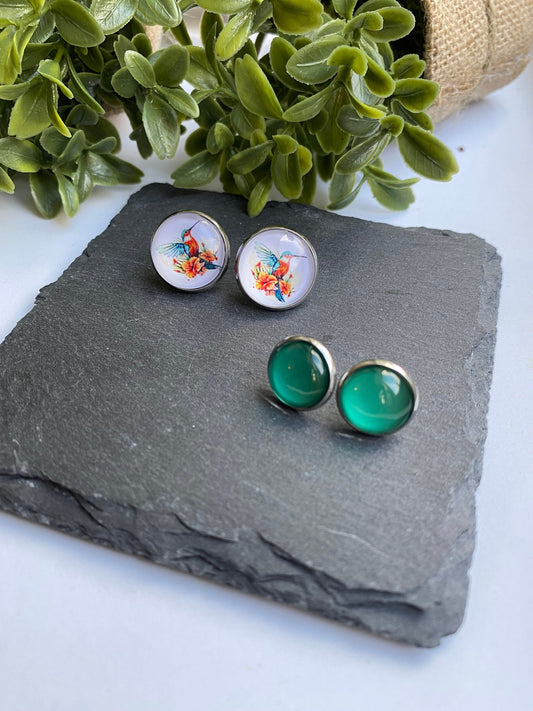 Hummingbird Cabochon Earring Set, Beach Holiday Stud Pack earrings, Double Stud Pack Earrings Set, Colourful Jewelry Gift set for Ladies