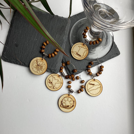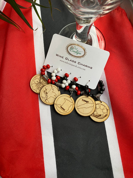 Laser Cut Wineglass Charms, Trinidad Country Patriotic Charms, Wine Lovers Gift For Pretty Glassware, Wooden Charms for Hostess Gift