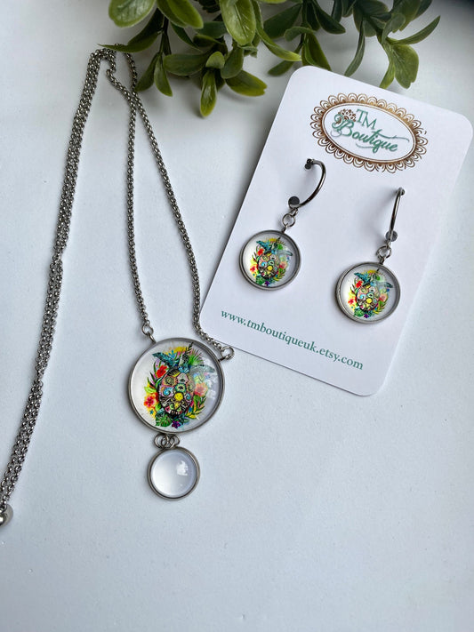 Turtle Earring Necklace Set, Adjustable Necklace, Beach Inspired Photo Jewelry, Turtle Photo Cabochon Set, Cruise Ship Holiday Jewelry