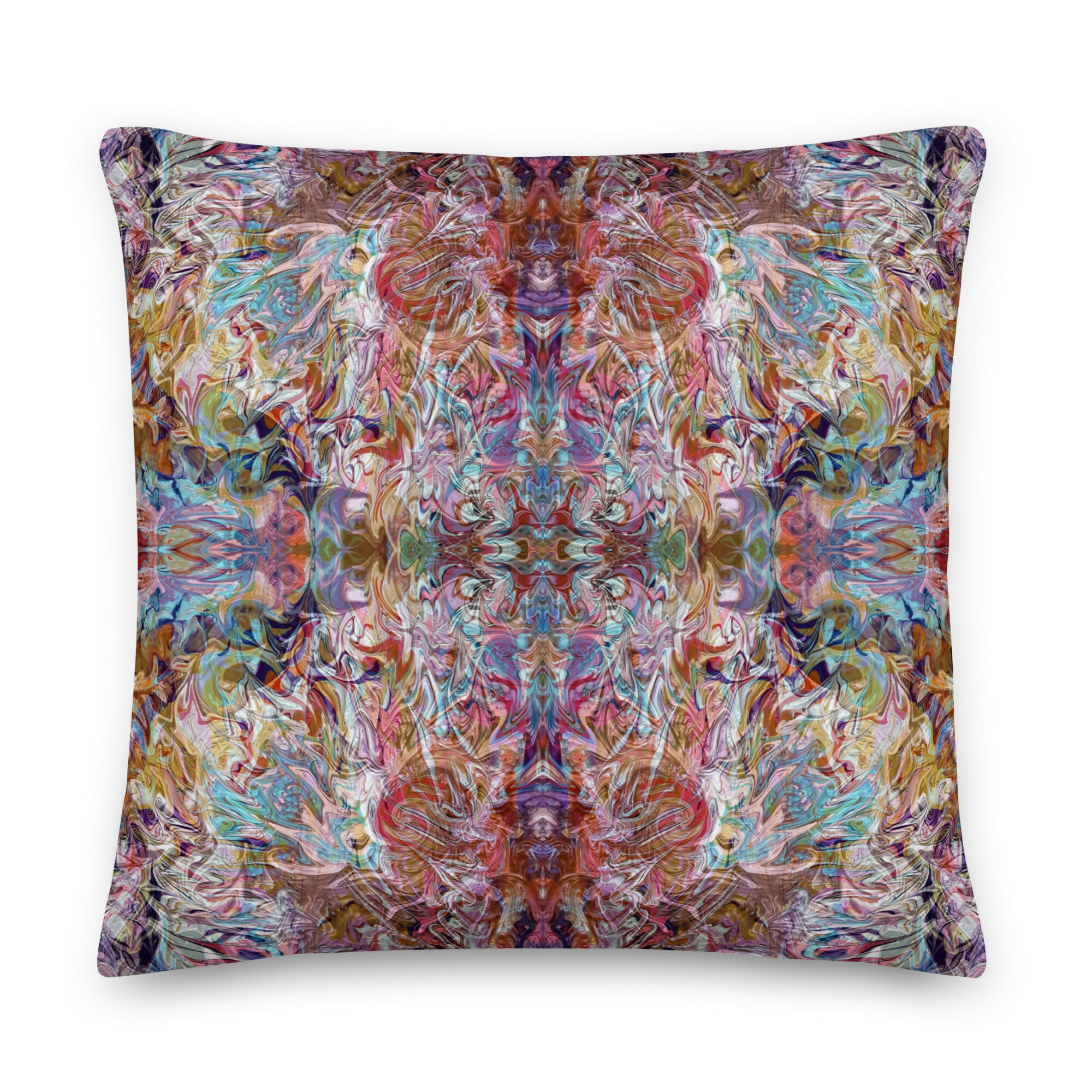 Fluid art printed on velvet square cushion, (the artwork is printed on both sides, available as 22x22 and 18x18 inches), invisible zip, polyester cushion filler.